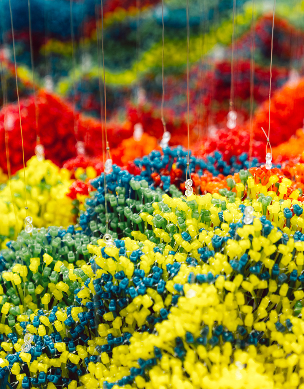 Le développement des organismes du monde cellulaire, végétal et minéral est déclencheur de réflexion pour sa recherche. S’inspirant du biomorphisme, des nouvelles technologies utilisées dans les domaines du design, de l’architectonique et de l’ingénierie, elle crée des sculptures et des installations aux compositions complexes, qu’elle élabore de manière intuitive. Ses œuvres prennent forme selon une approche kinesthésique, geste par geste, en relation directe avec les qualités et réactions de la matière (souplesse, rigidité, translucidité).