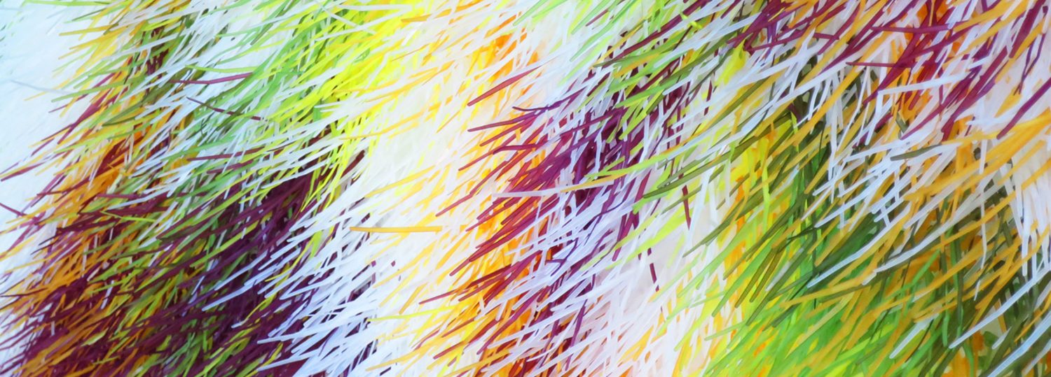L’artiste invite le public de tous âges, plus particulièrement les jeunes enfants, d’enfiler différentes longueurs et couleurs de Ty-Rap teint sur des formes géométriques dont les percées laisseront passer de la lumière créant ainsi des effets de translucidité et de ponctuation d’éclairage coloré.