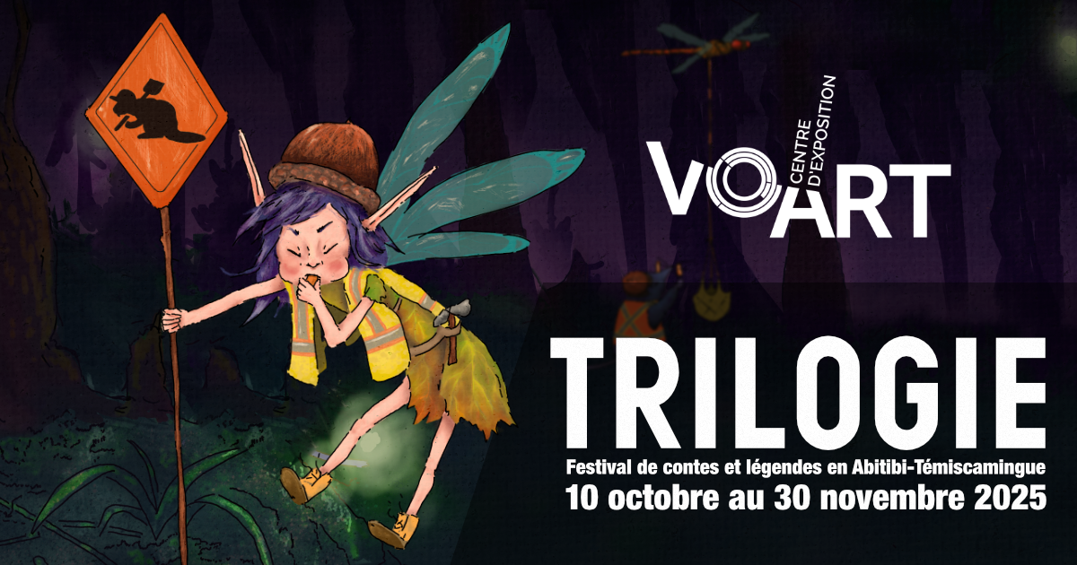 En partenariat avec le Conservatoire de musique de Val-d’Or et le VOART Centre d’exposition de Val-d’Or, le Festival de contes et légendes en Abitibi-Témiscamingue présente TRILOGIE, un projet artistique transdisciplinaire. En effet, chaque œuvre en arts visuels a été jumelée à un.e conteur.e puis à un.e musicien.ne. Le public est invité à découvrir cinq contes liés aux œuvres picturales, sculpturales, installatives et numériques, dans un univers sonore inédit.